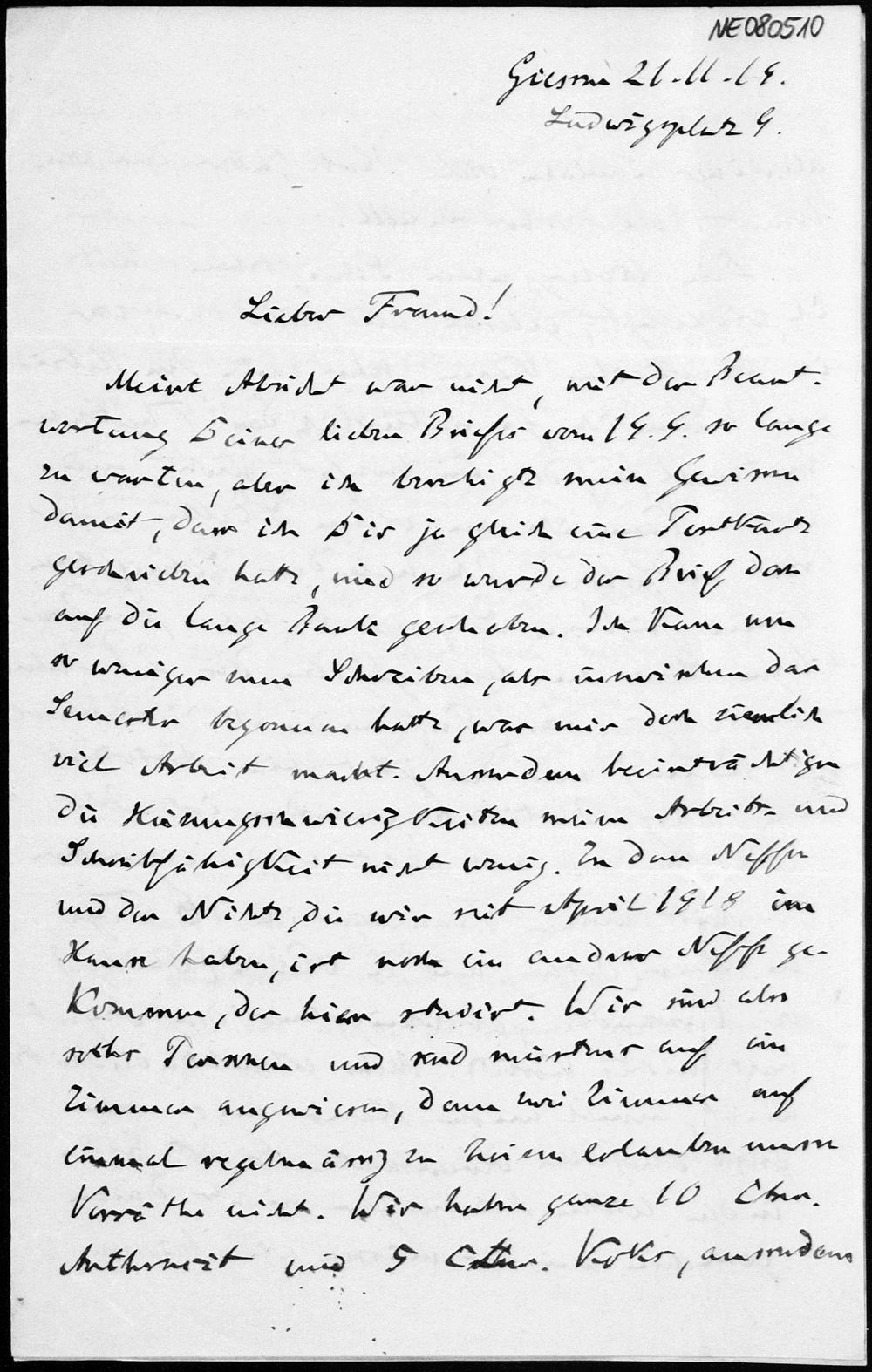 Brief von Friedrich Engel an Eduard Study vom 21.11.1919