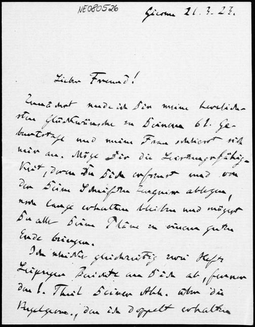 Brief von Friedrich Engel an Eduard Study vom 21.3.1923