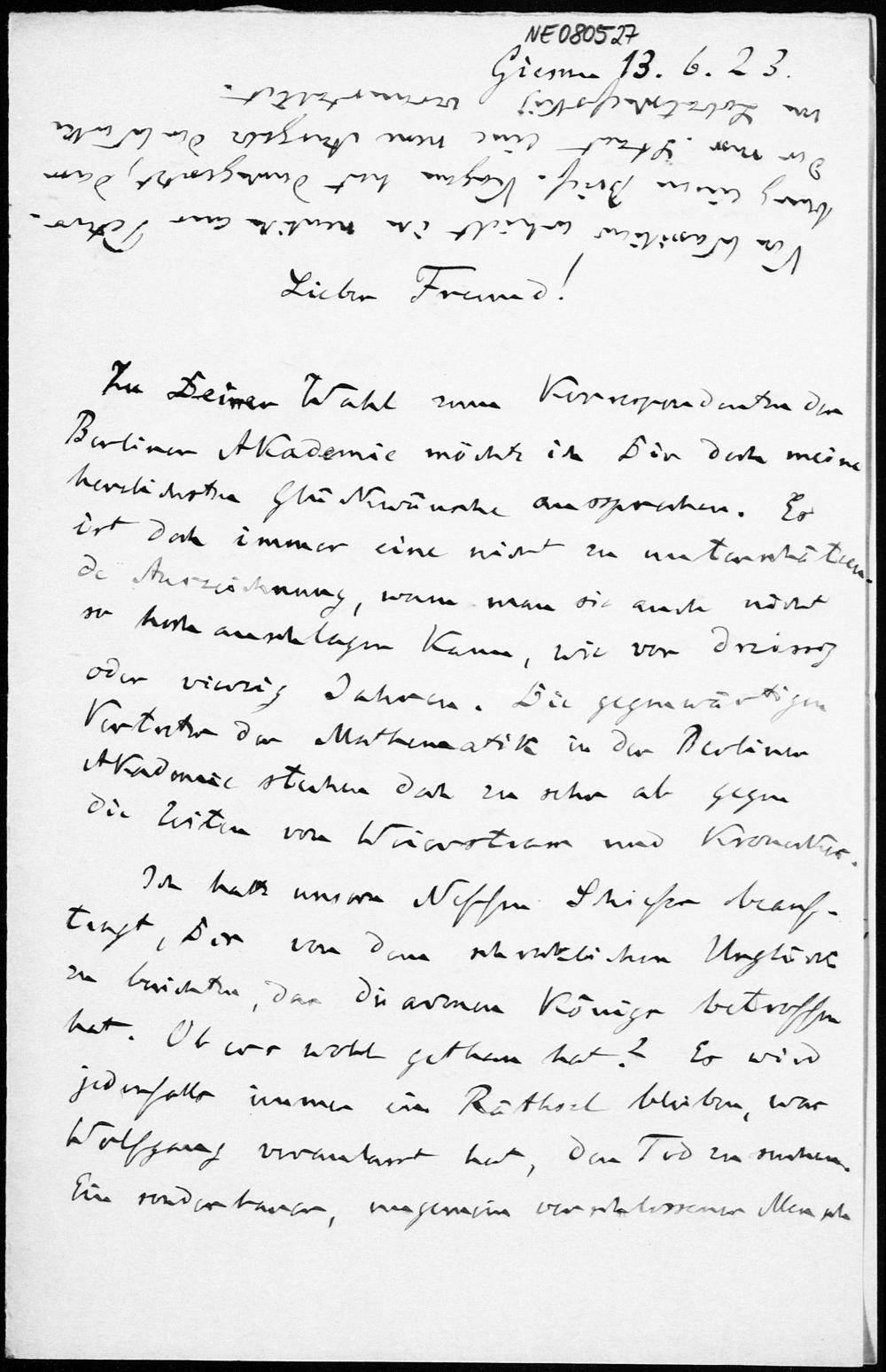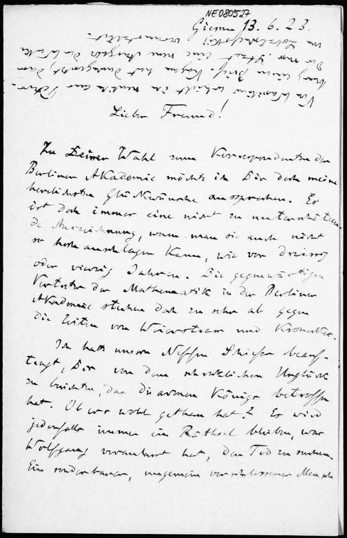 Brief von Friedrich Engel an Eduard Study vom 13.6.1923