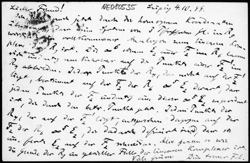 Postkarte von Friedrich Engel an Eduard Study vom 4.10.1899