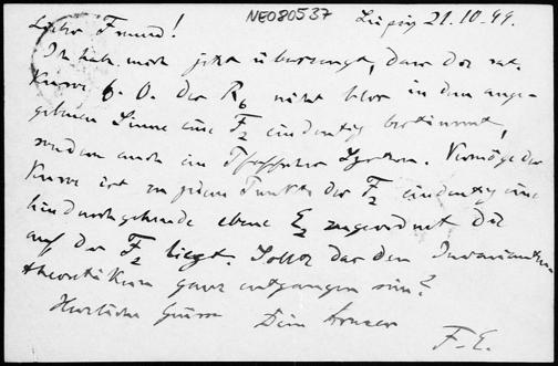 Postkarte von Friedrich Engel an Eduard Study vom 21.10.1899