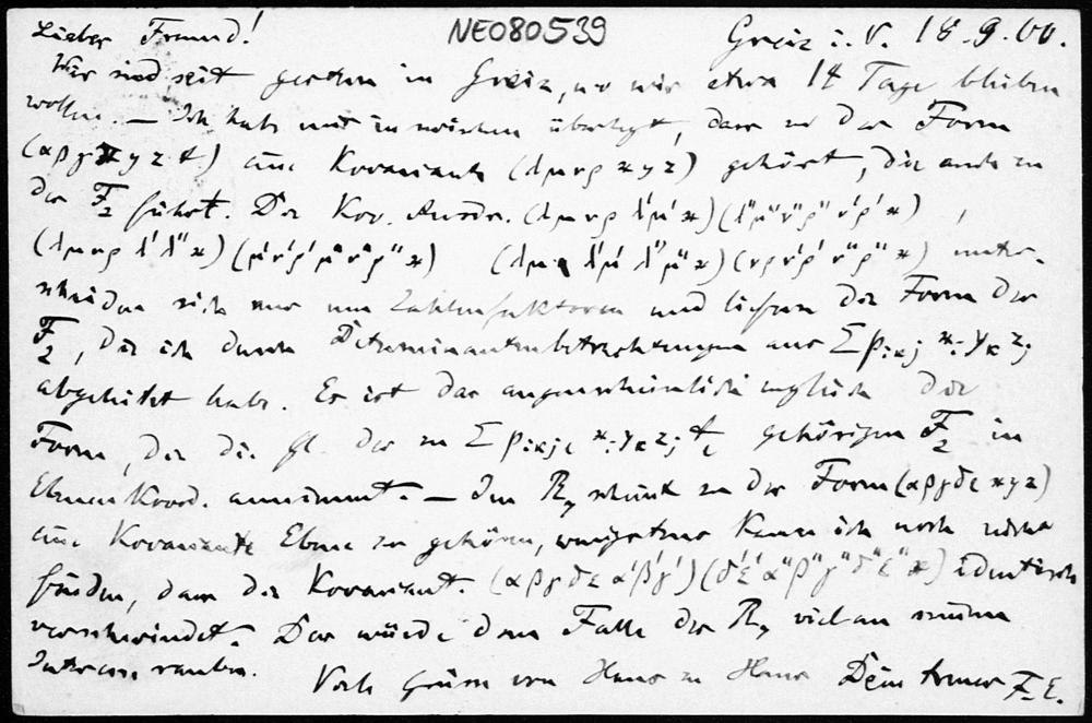 Postkarte von Friedrich Engel an Eduard Study vom 18.9.1900
