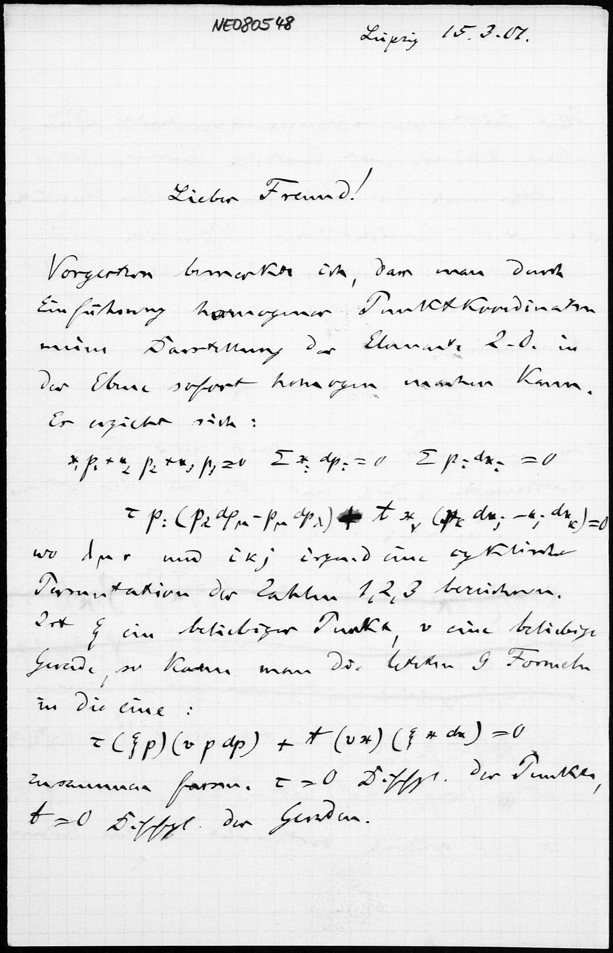 Brief von Friedrich Engel an Eduard Study vom 15.3.1901
