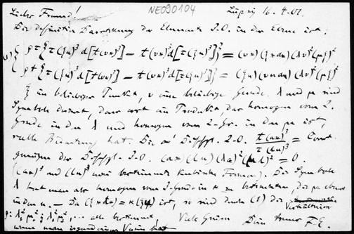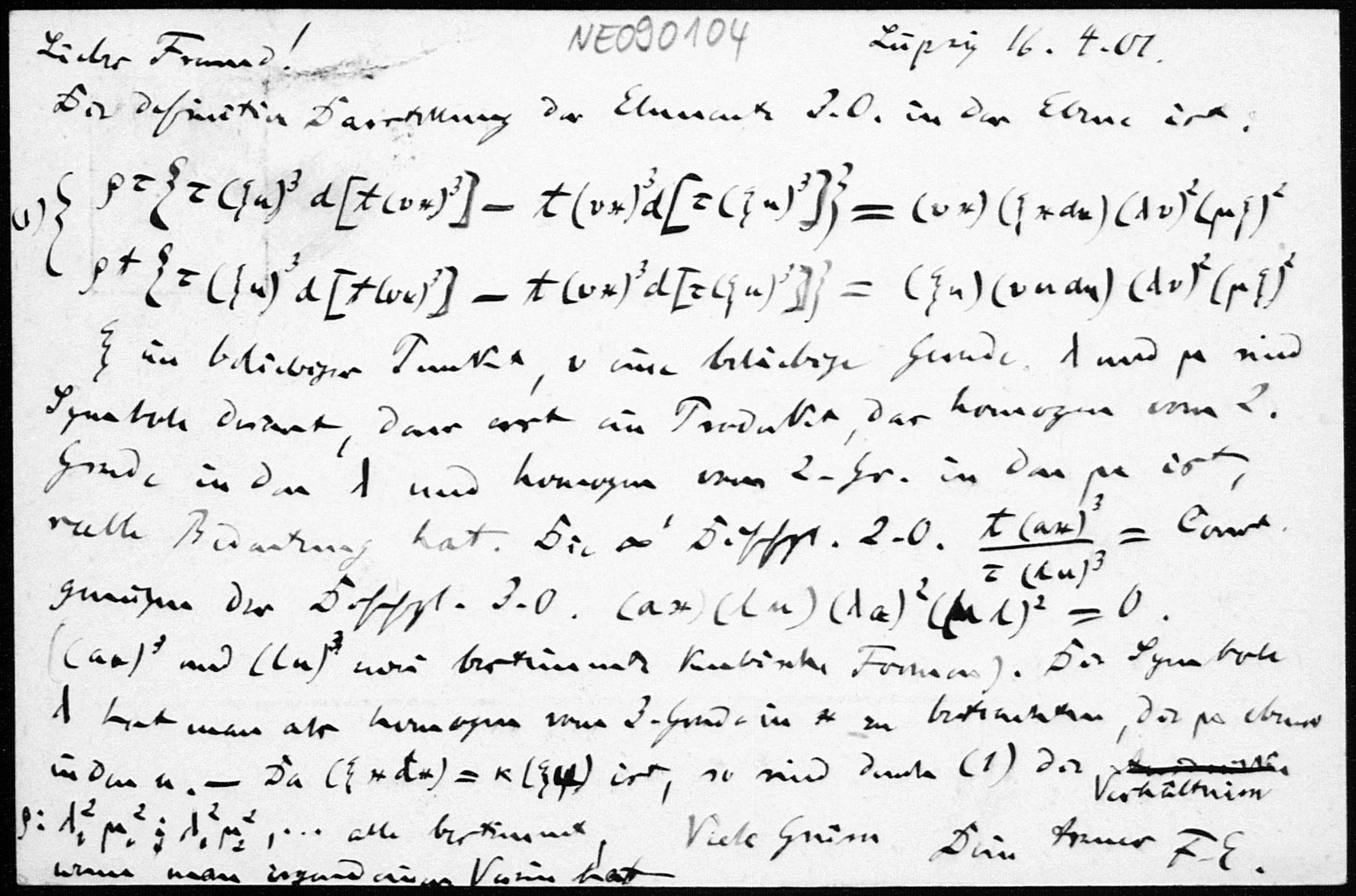 Postkarte von Friedrich Engel an Eduard Study vom 16.4.1901