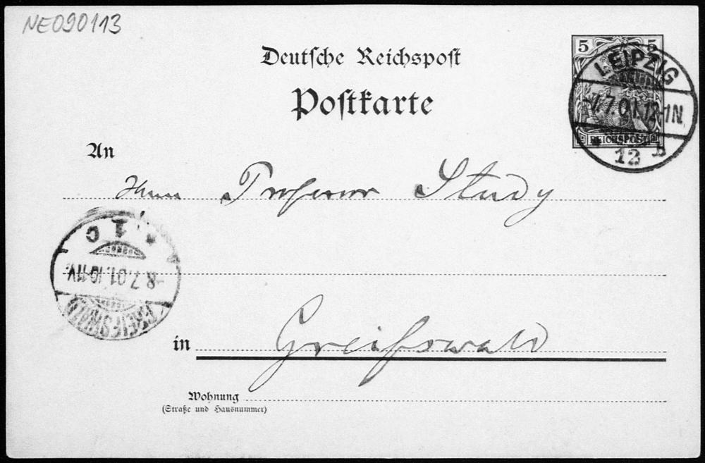 Postkarte von Friedrich Engel an Eduard Study vom 7.7.1901