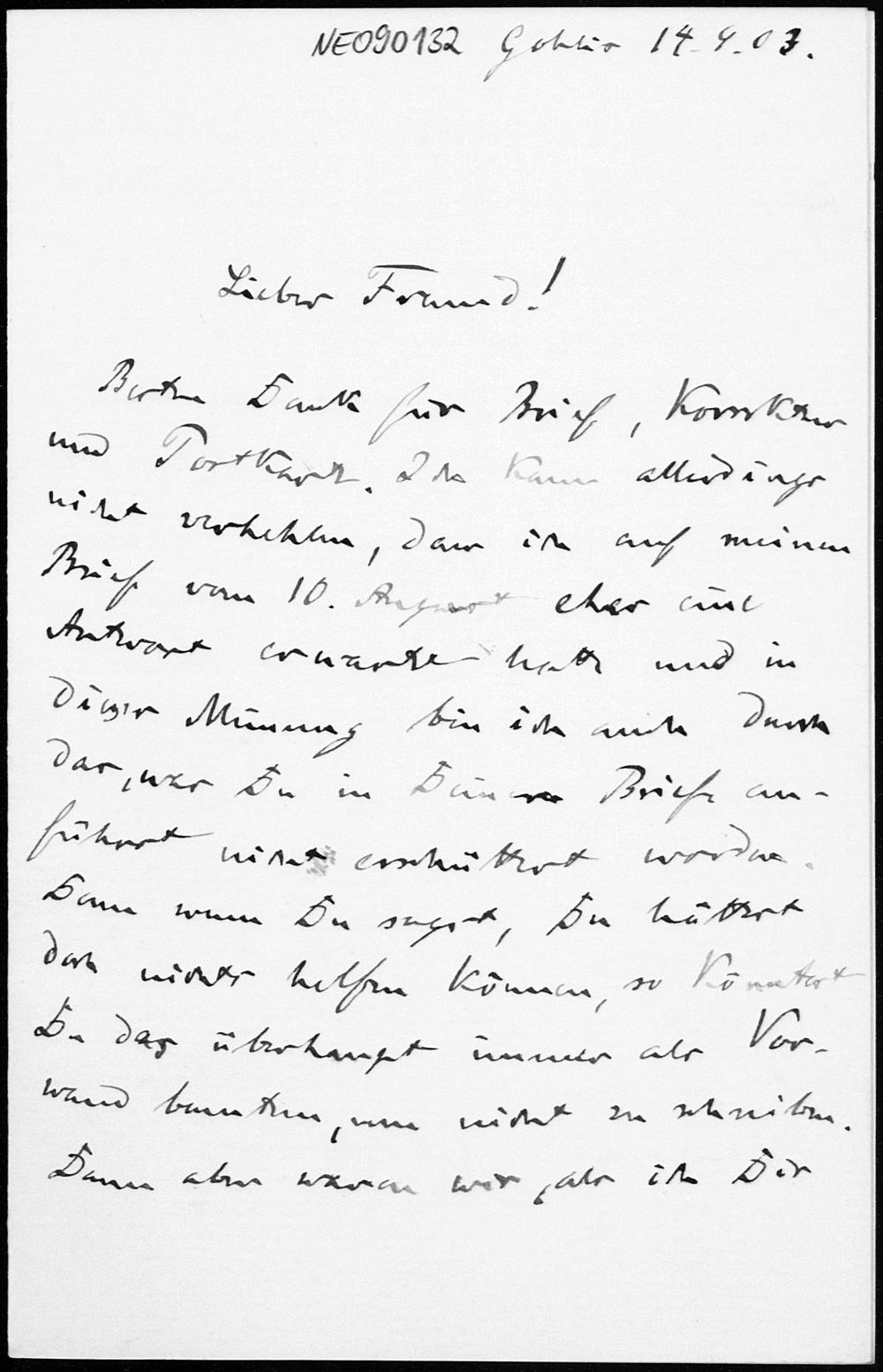 Brief von Friedrich Engel an Eduard Study vom 14.9.1903