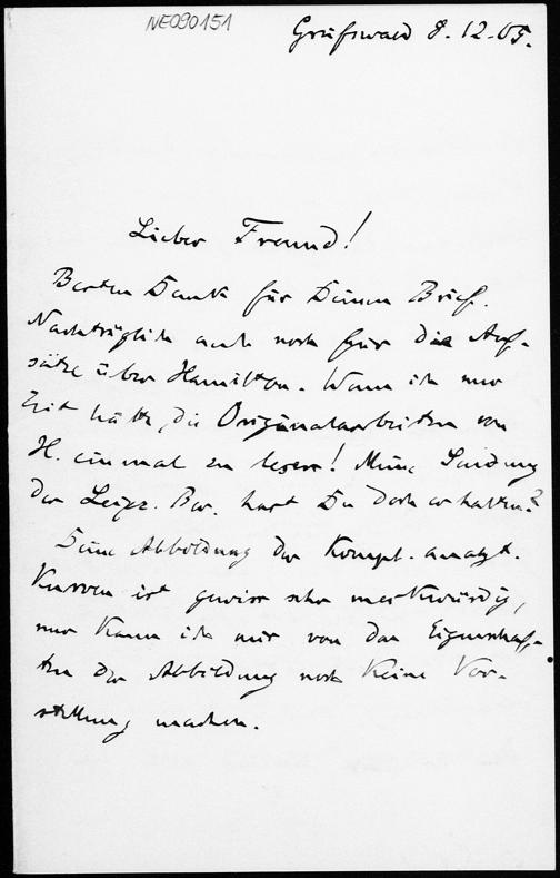 Brief von Friedrich Engel an Eduard Study vom 8.12.1905