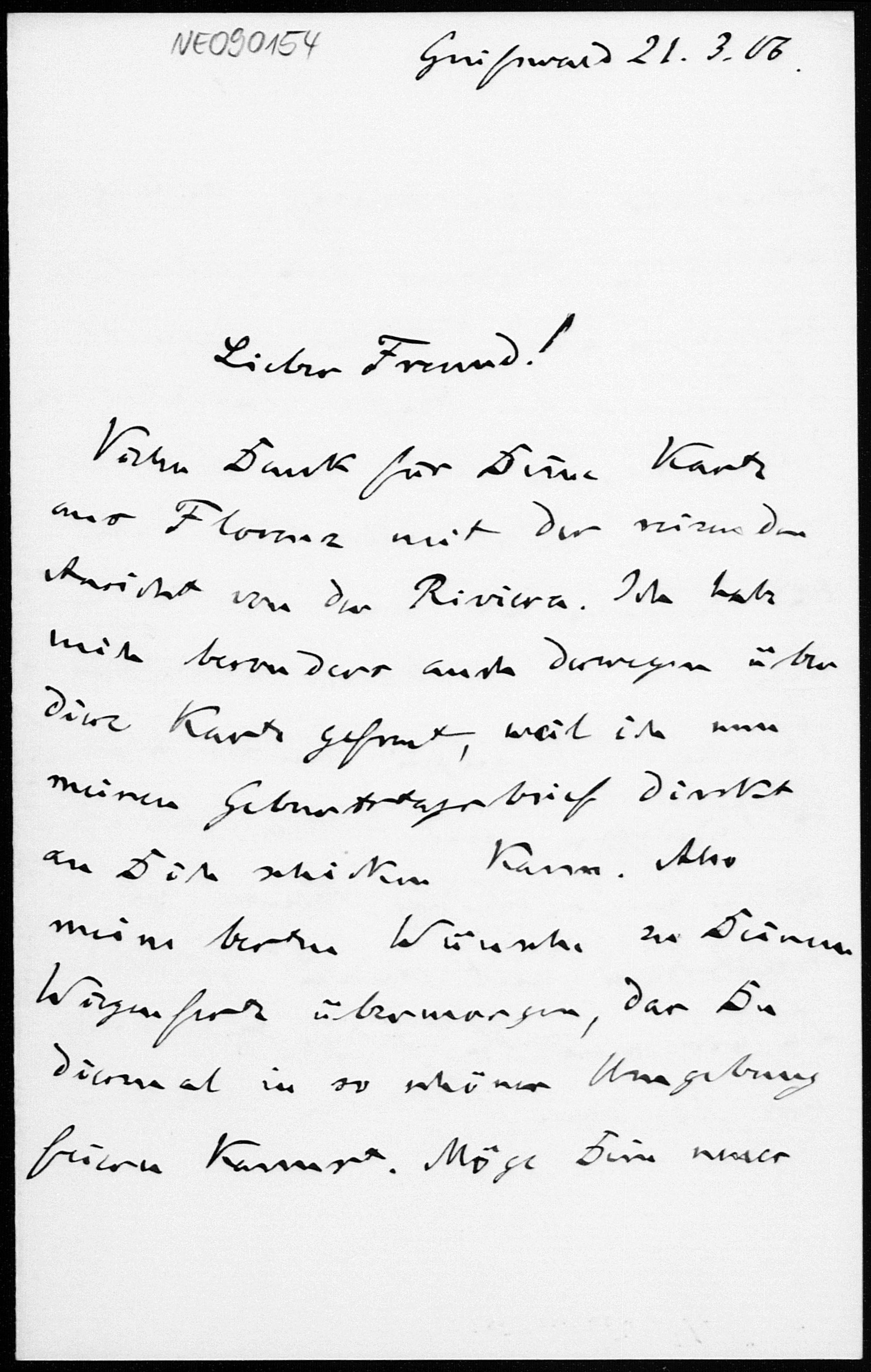 Brief von Friedrich Engel an Eduard Study vom 21.3.1906