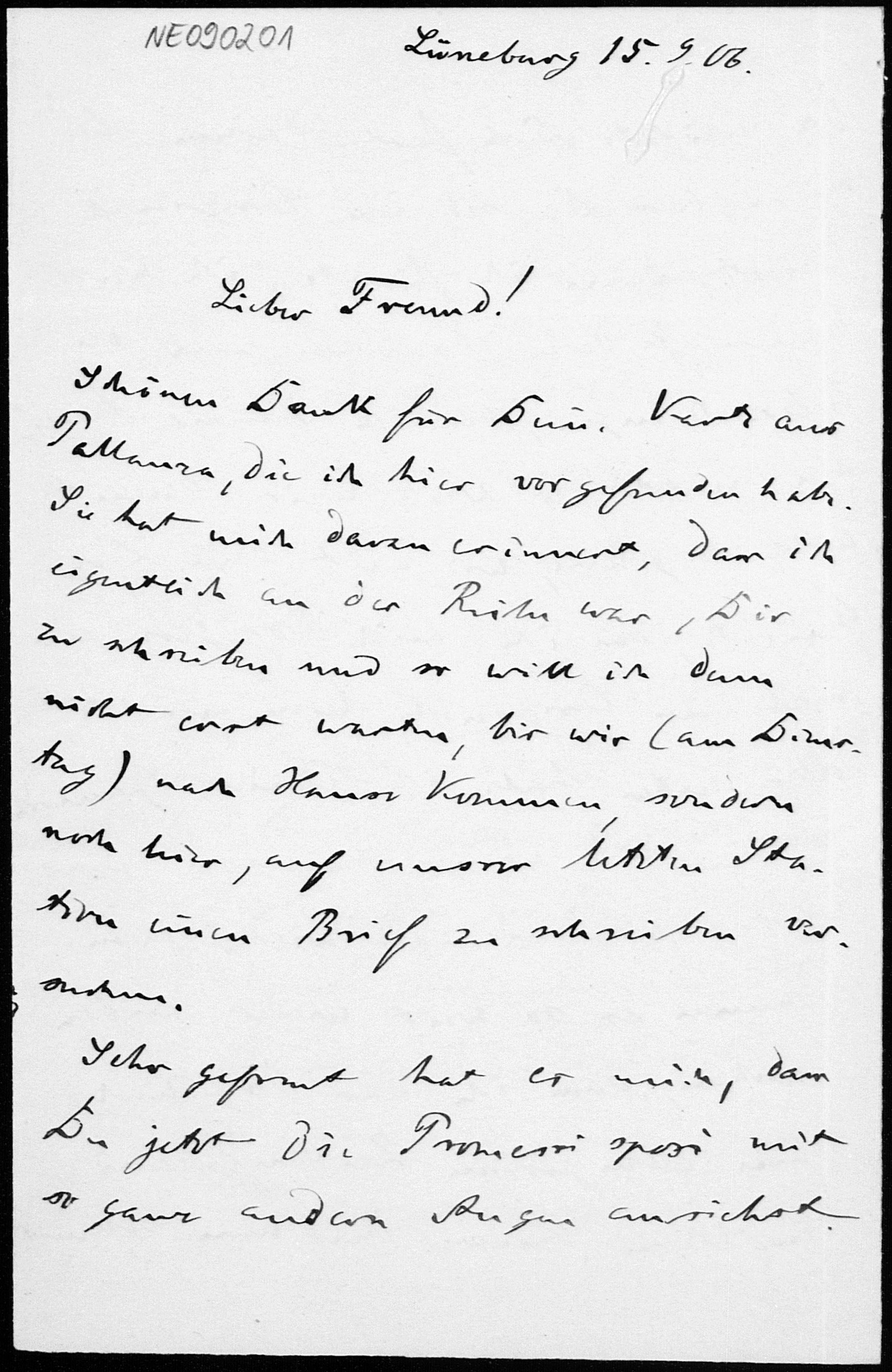 Brief von Friedrich Engel an Eduard Study vom 15.9.1906