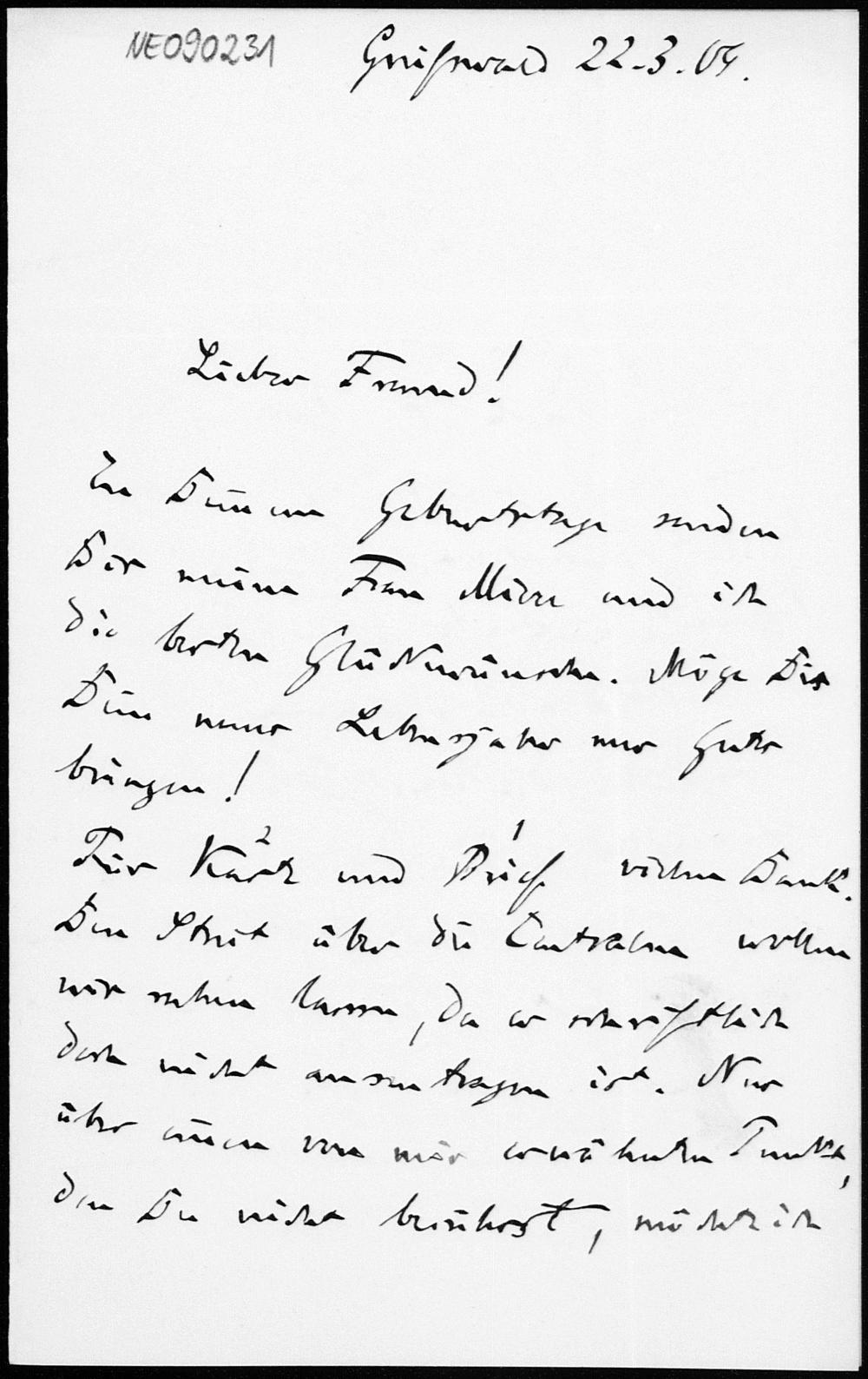 Brief von Friedrich Engel an Eduard Study vom 22.3.1909