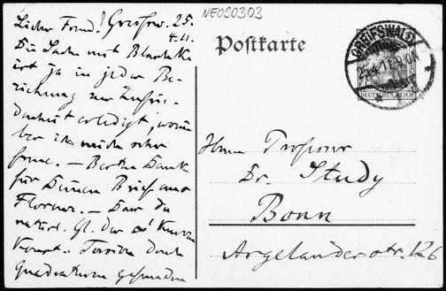 Postkarte von Friedrich Engel an Eduard Study vom 25.4.1911