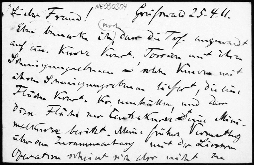 Postkarte von Friedrich Engel an Eduard Study vom 25.4.1911