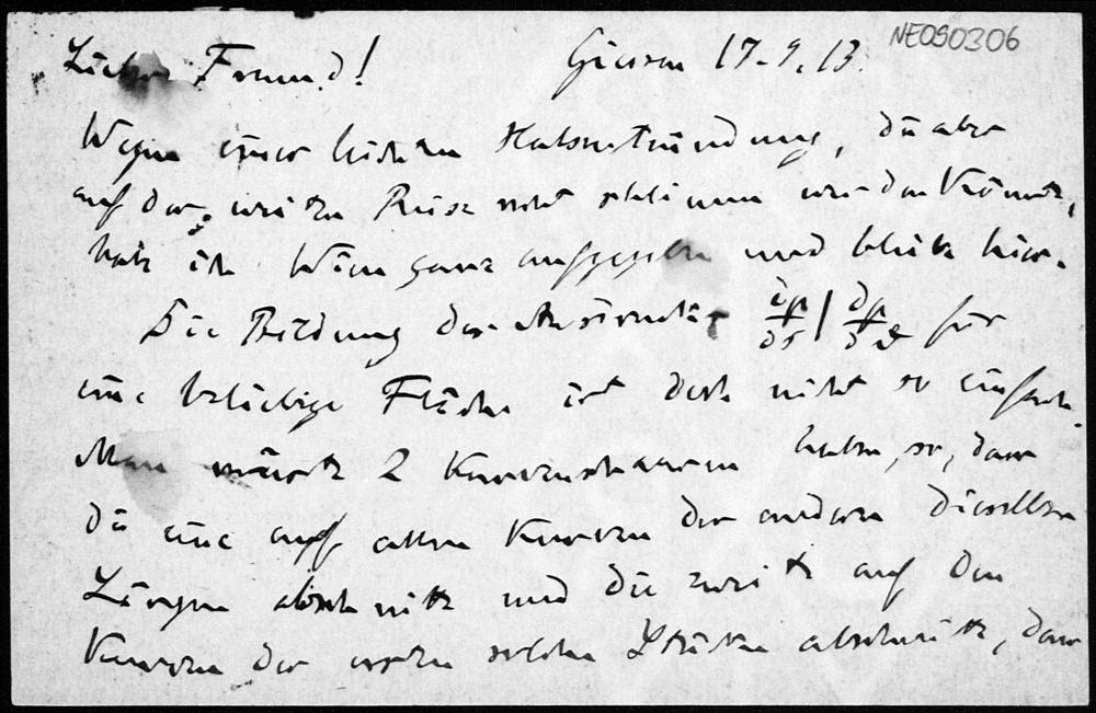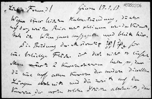 Postkarte von Friedrich Engel an Eduard Study vom 17.9.1913