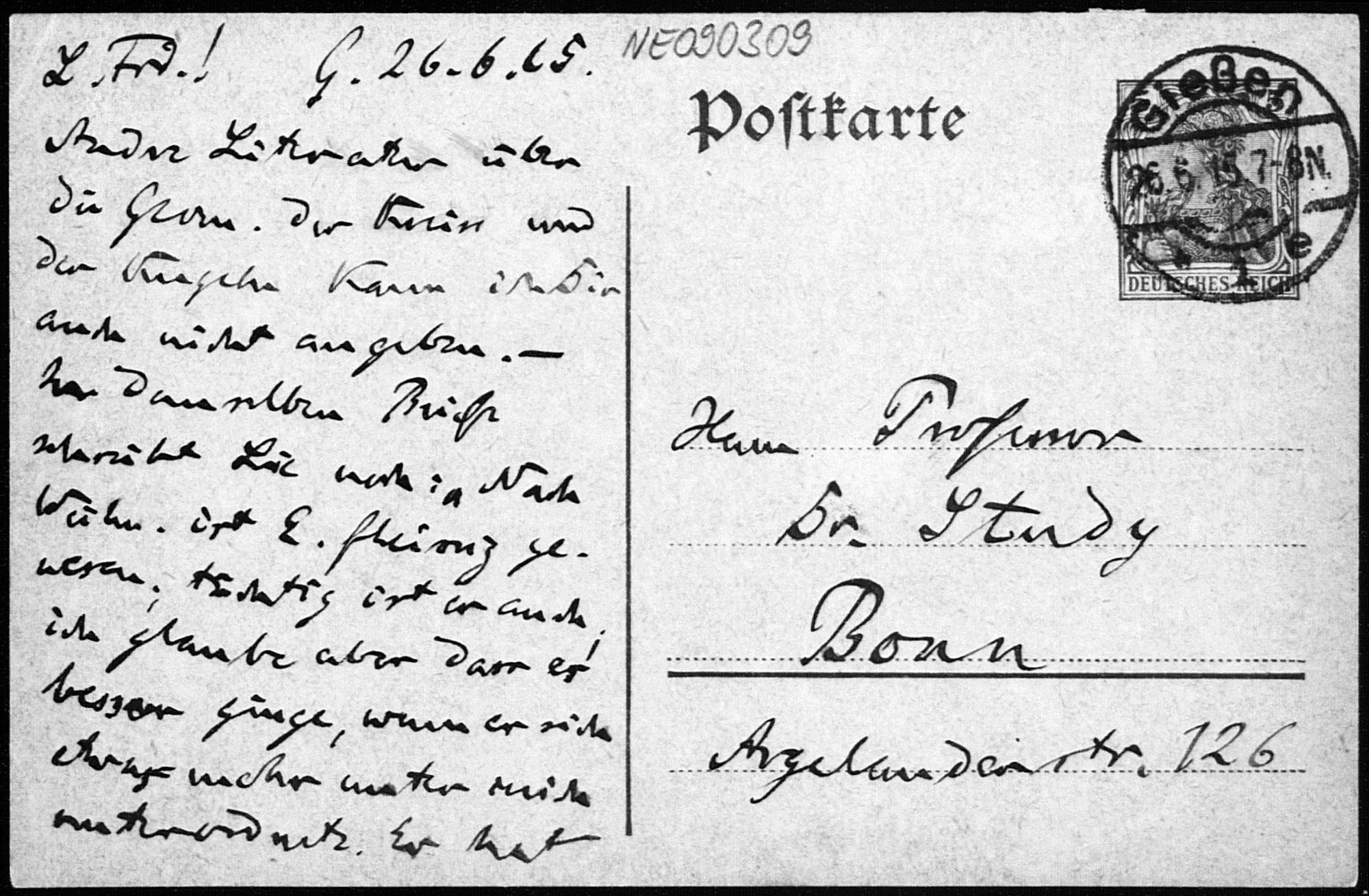 Postkarte von Friedrich Engel an Eduard Study vom 26.6.1915