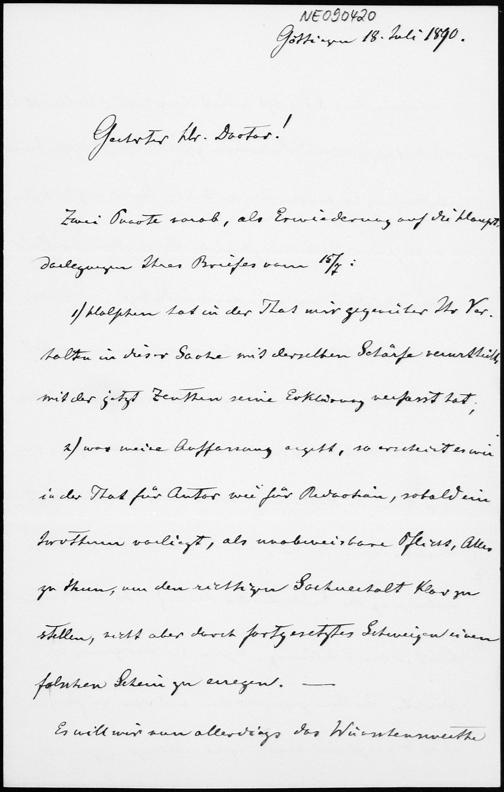 Brief von Felix Klein an Eduard Study vom 18.7.1890