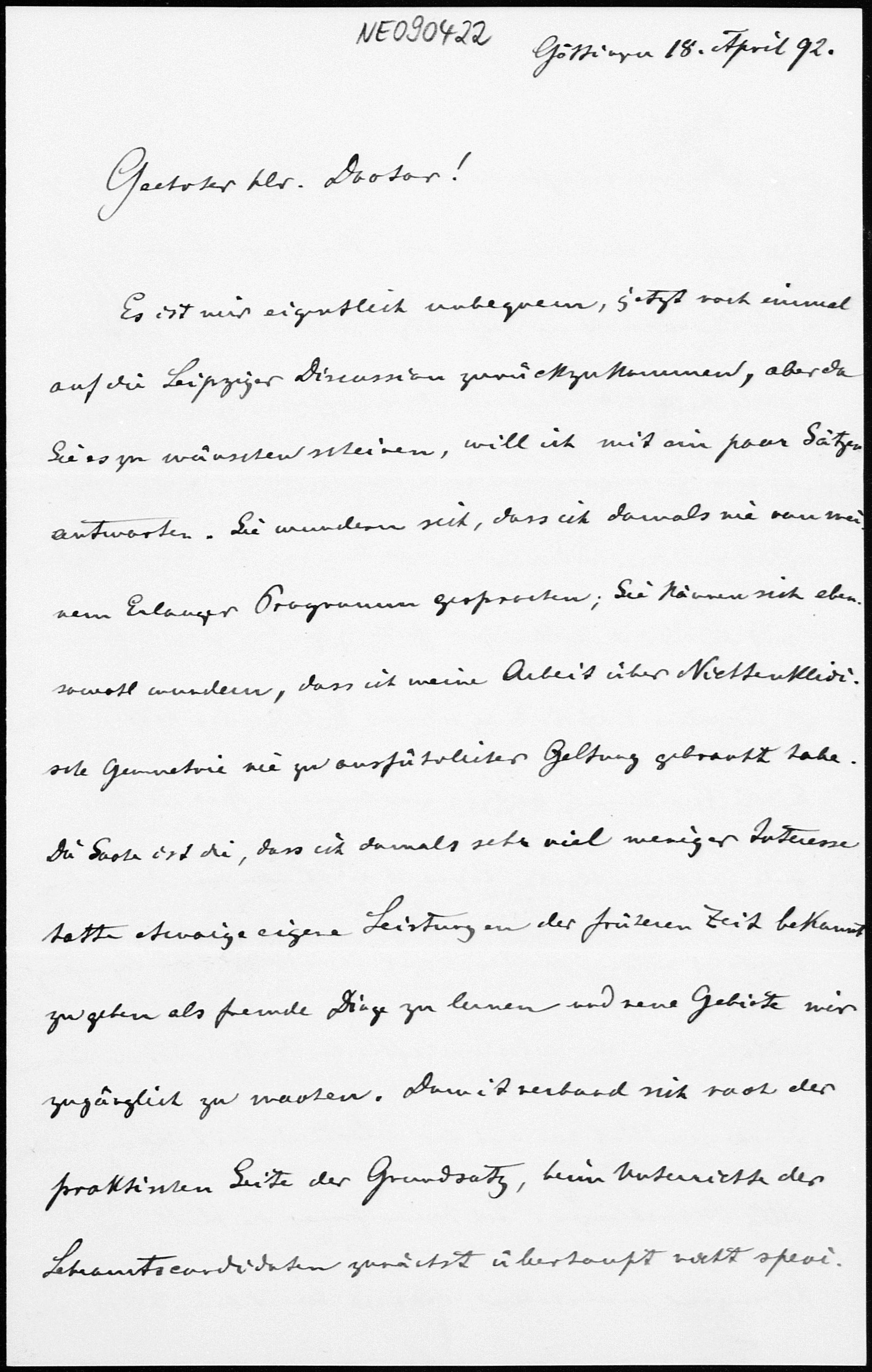 Brief von Felix Klein an Eduard Study vom 18.4.1892