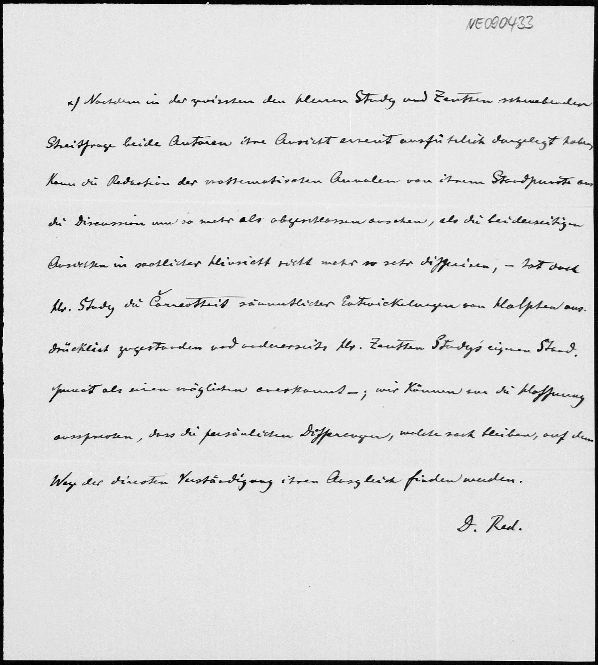 Fußnote der Redaction der mathematischen Annalen, o.D