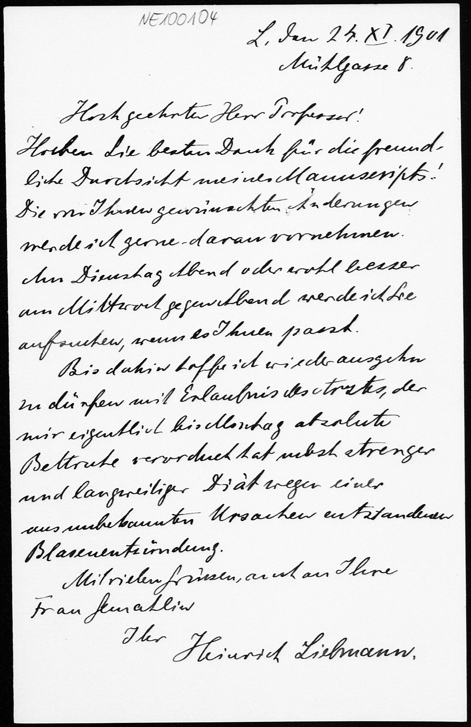 Brief von Heinrich Liebmann an Friedrich Engel vom 24.11.1901