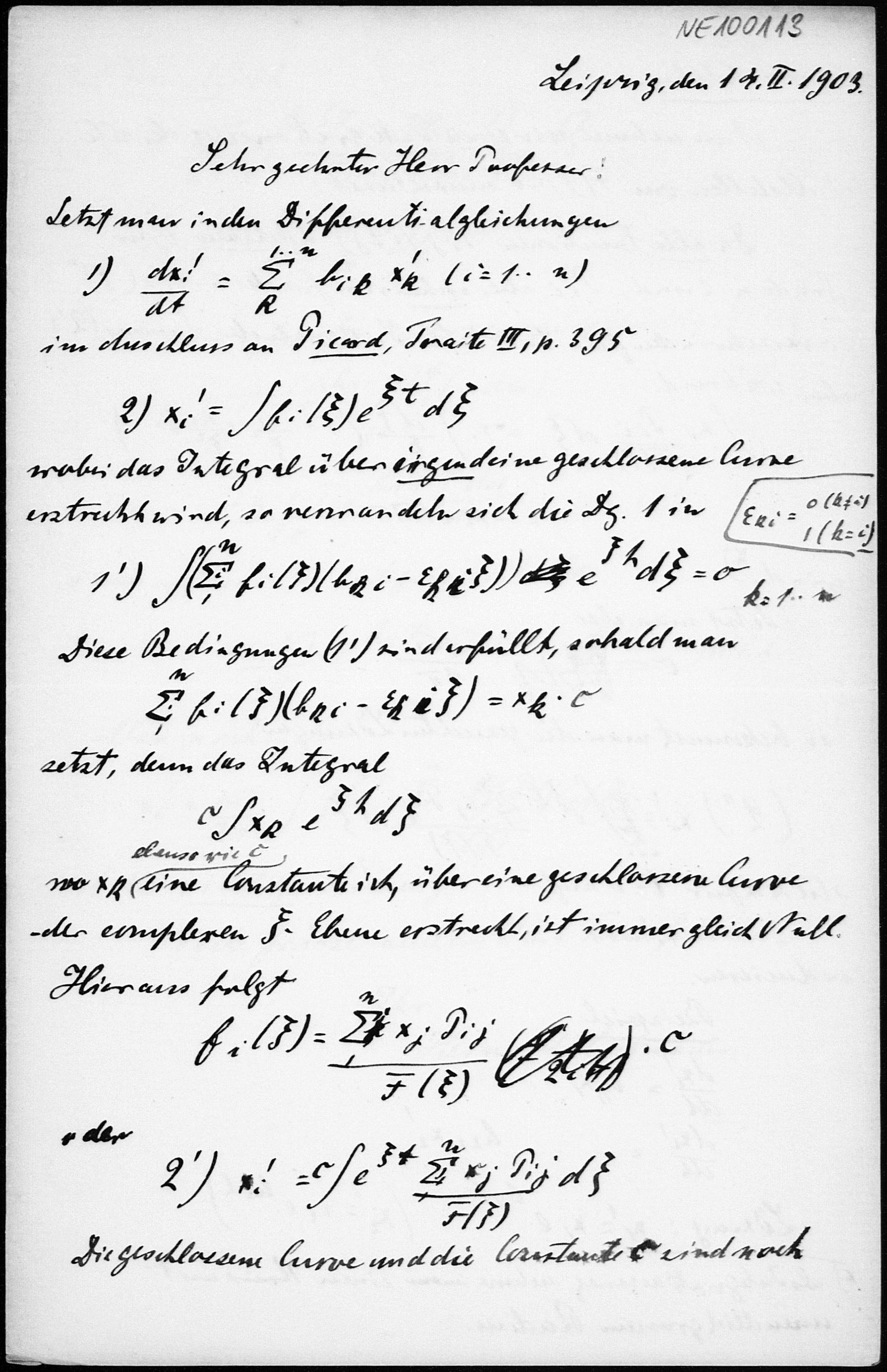 Brief von Heinrich Liebmann an Friedrich Engel vom 14.2.1903
