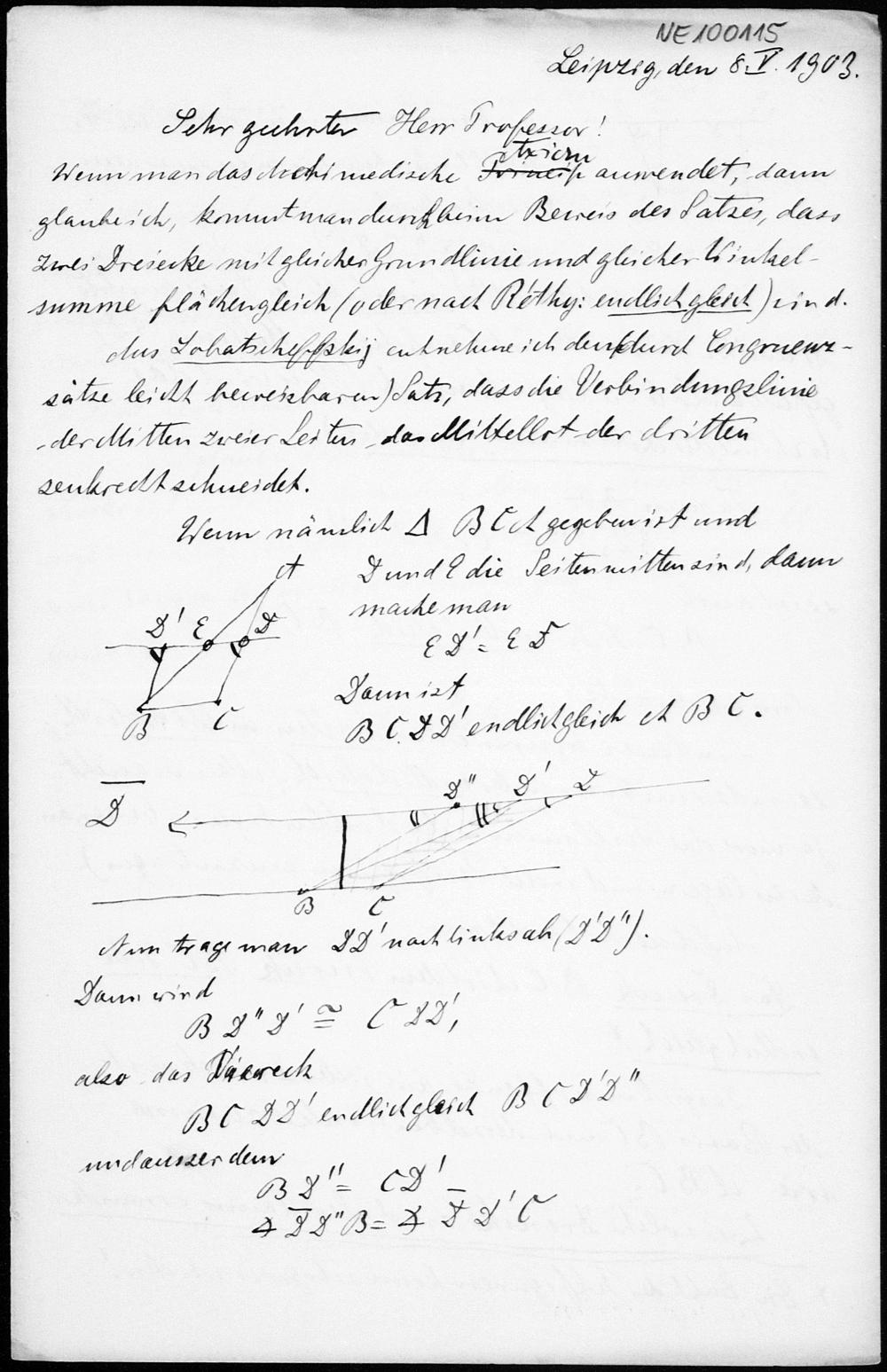 Brief von Heinrich Liebmann an Friedrich Engel vom 8.5.1903