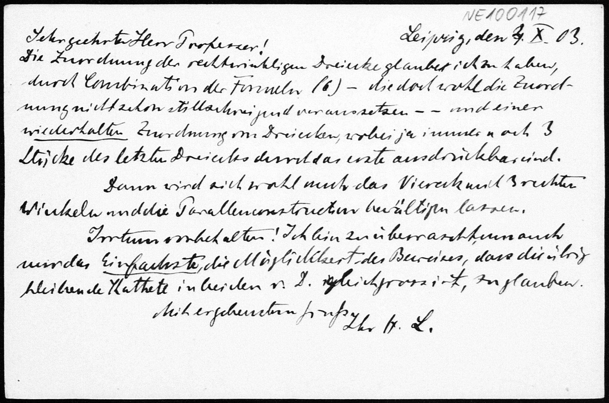 Postkarte von Heinrich Liebmann an Friedrich Engel vom 4.10.1903