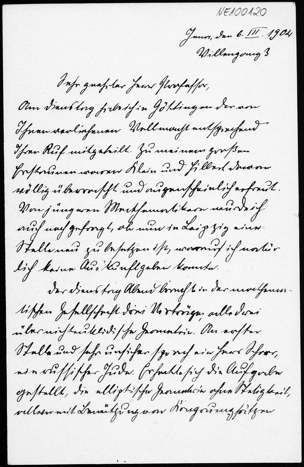 Brief von Heinrich Liebmann an Friedrich Engel vom 6.3.1904