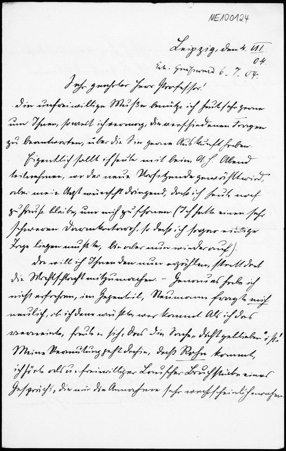 Brief von Heinrich Liebmann an Friedrich Engel vom 4.7.1904