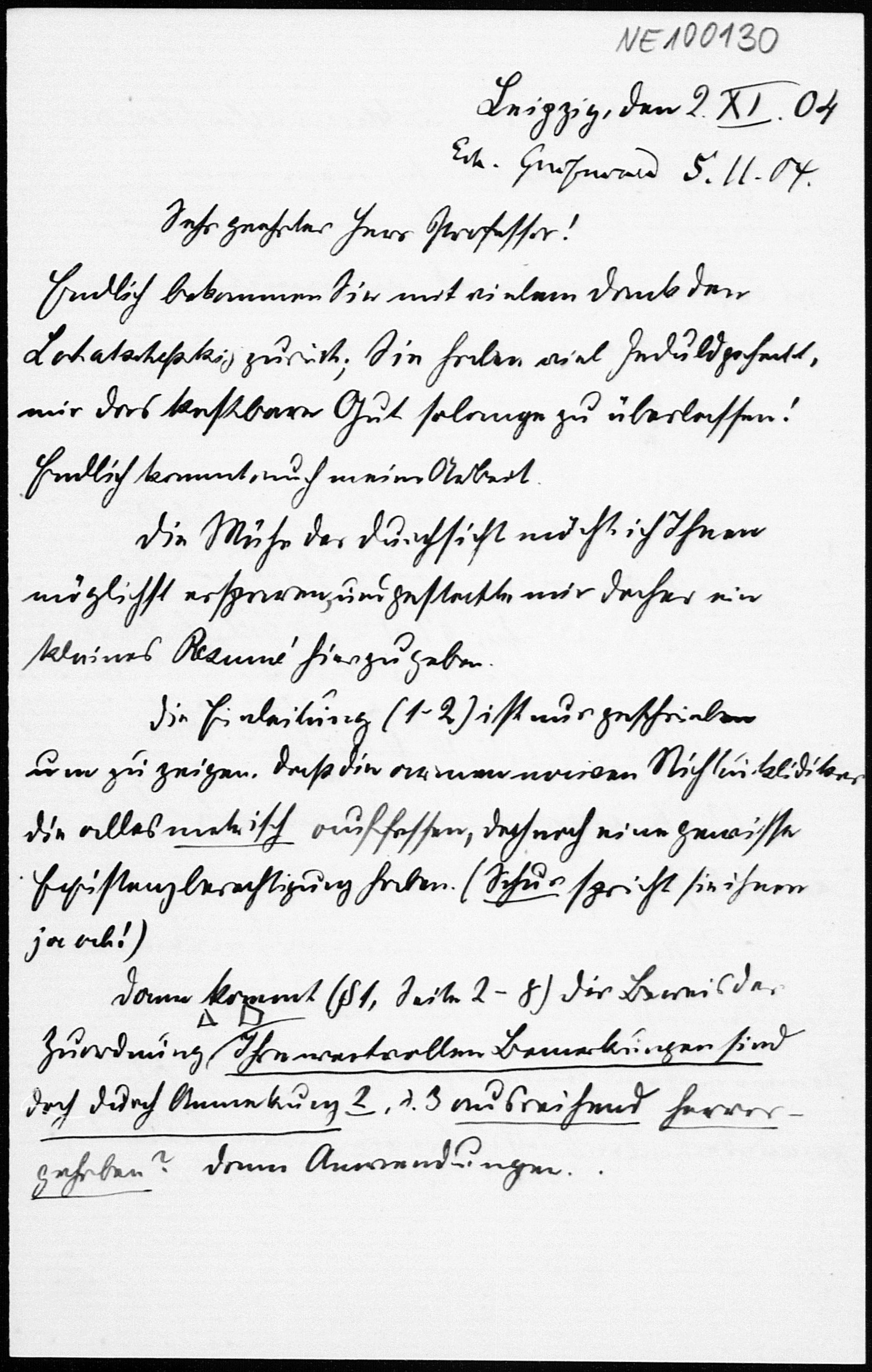 Brief von Heinrich Liebmann an Friedrich Engel vom 2.11.1904
