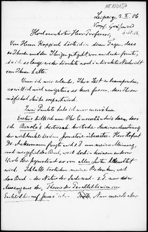 Brief von Heinrich Liebmann an Friedrich Engel vom 3.10.1906