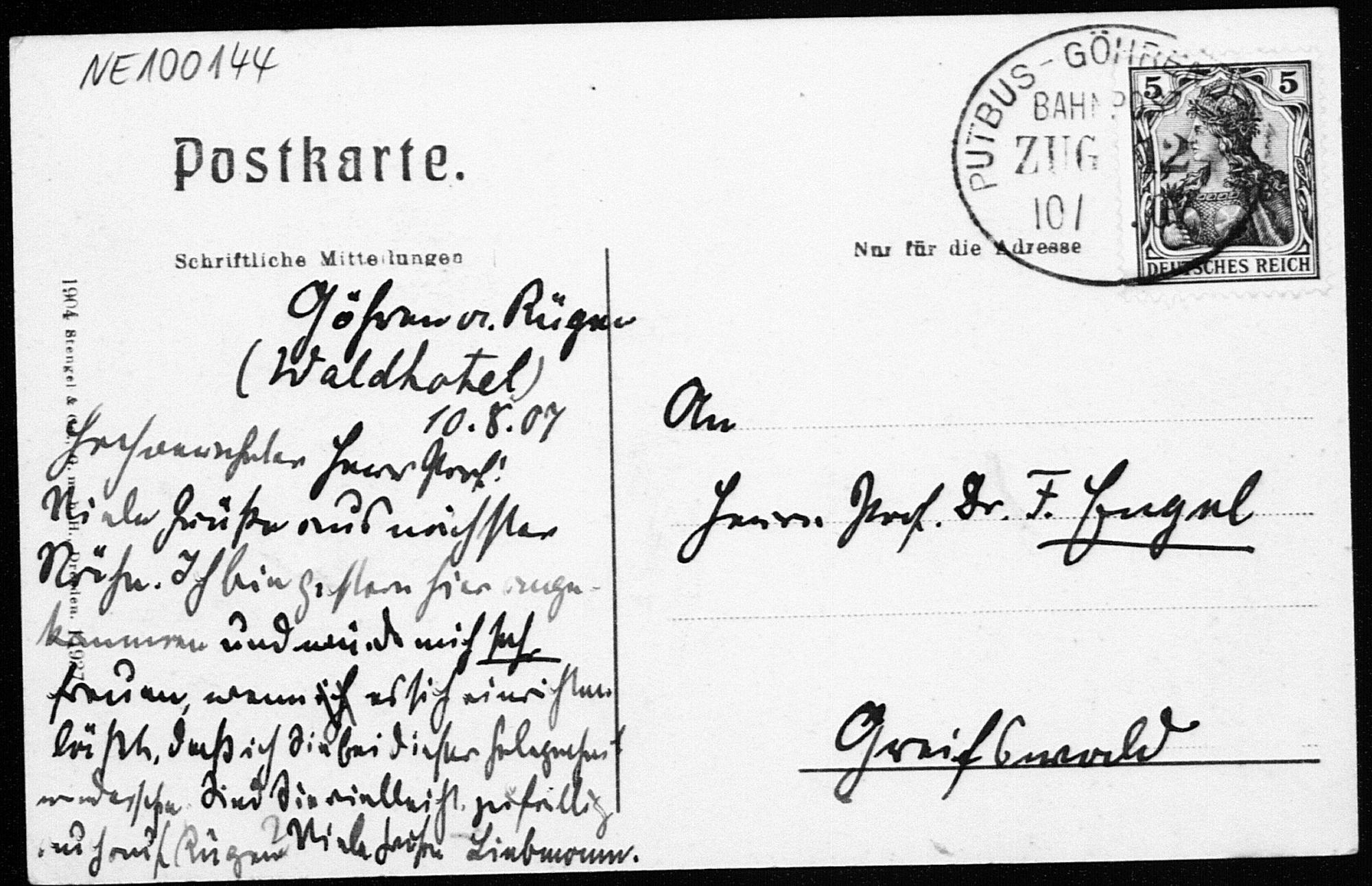Ansichtskarte von Heinrich Liebmann an Friedrich Engel vom 10.8.1907