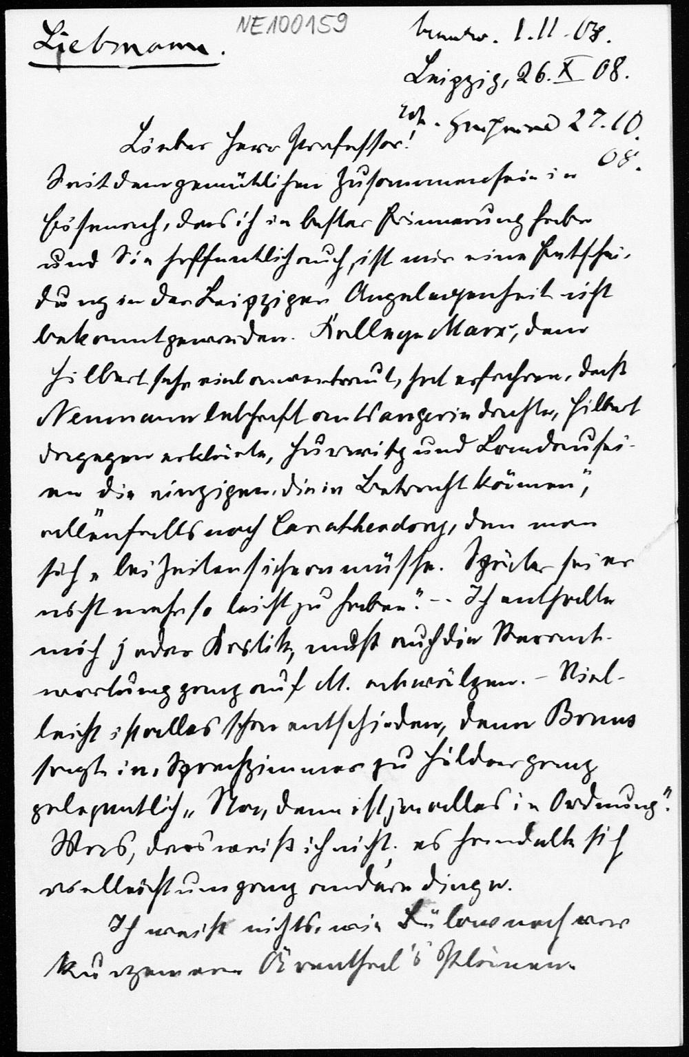 Brief von Heinrich Liebmann an Friedrich Engel vom 26.10.1908