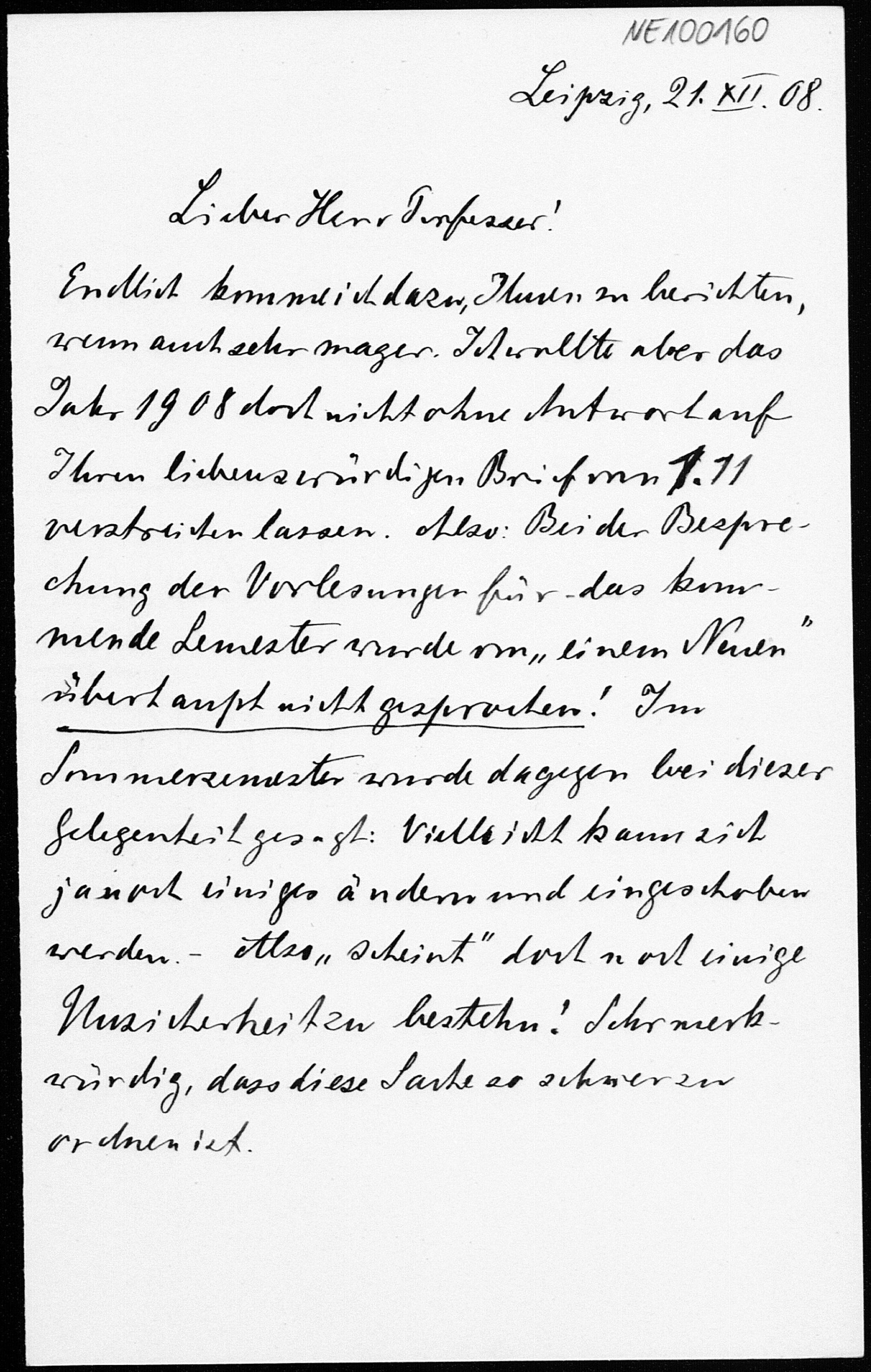 Brief von Heinrich Liebmann an Friedrich Engel vom 21.12.1908