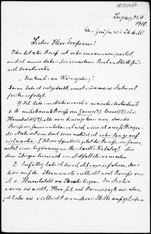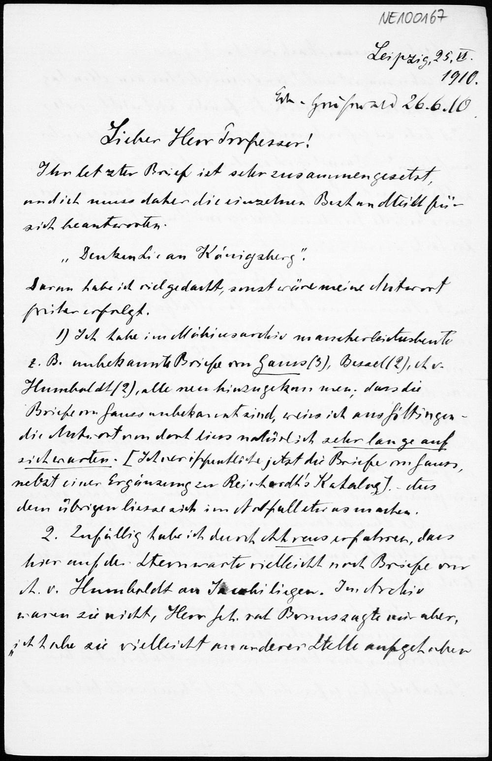 Brief von Heinrich Liebmann an Friedrich Engel vom 25.6.1910