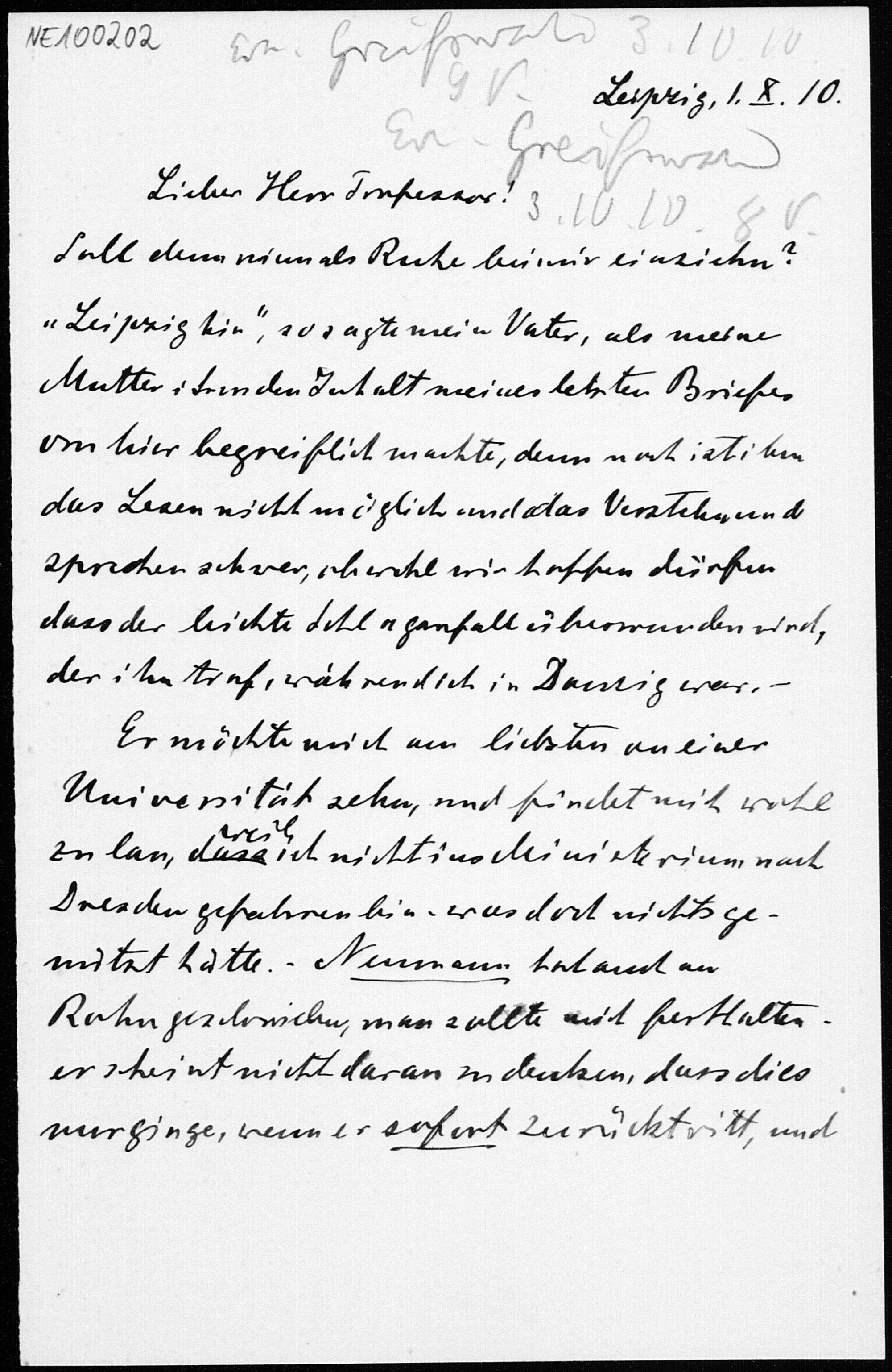 Brief von Heinrich Liebmann an Friedrich Engel vom 1.10.1910