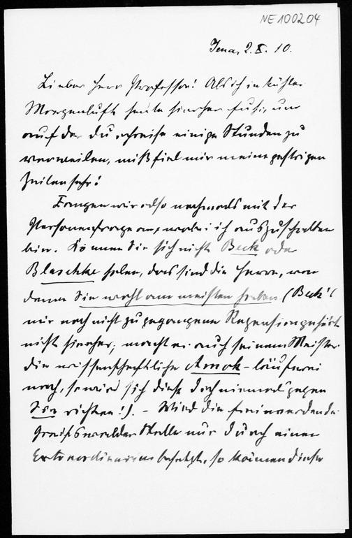 Brief von Heinrich Liebmann an Friedrich Engel vom 2.10.1910