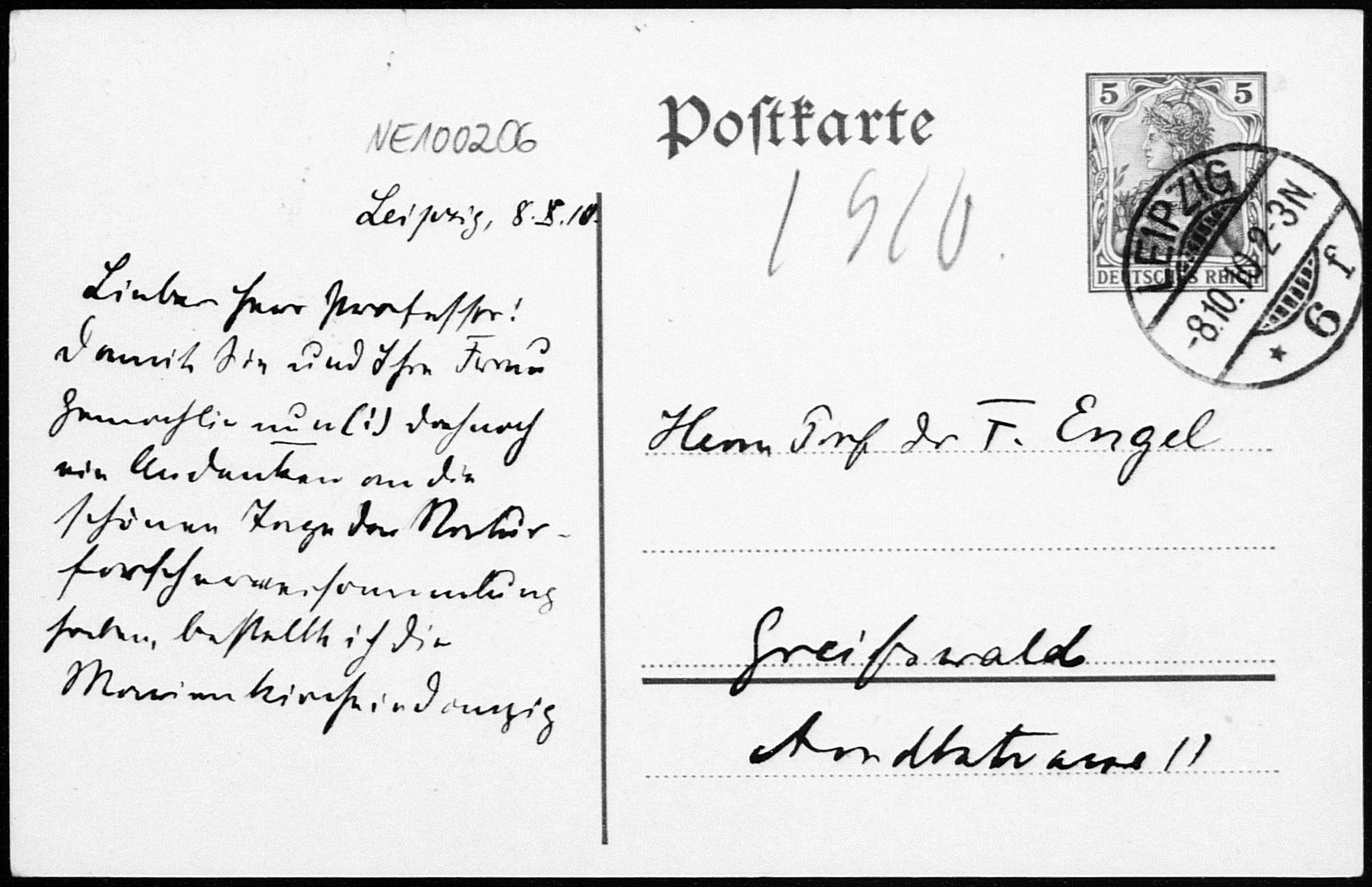 Postkarte von Heinrich Liebmann an Friedrich Engel vom 8.10.1910