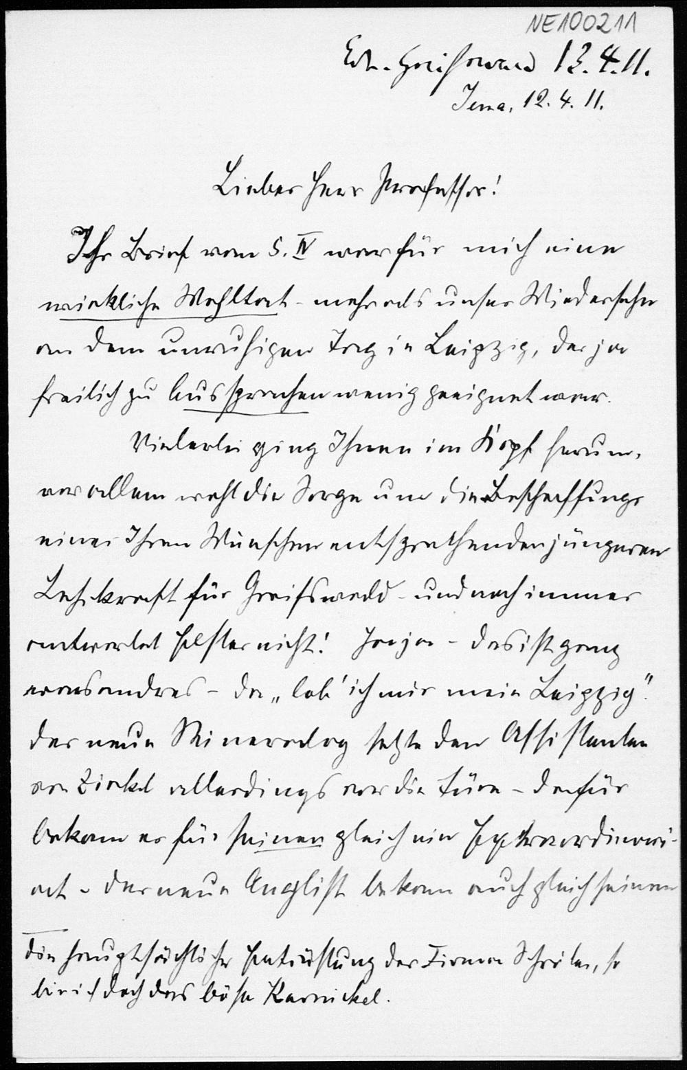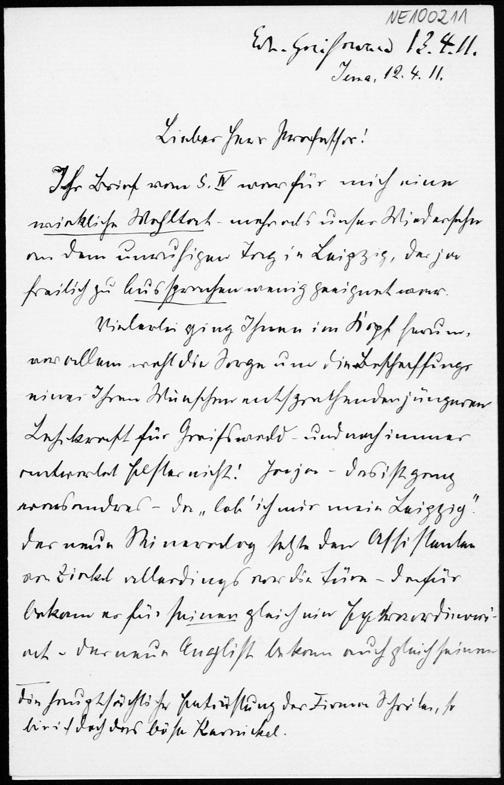 Brief von Heinrich Liebmann an Friedrich Engel vom 12.4.1911
