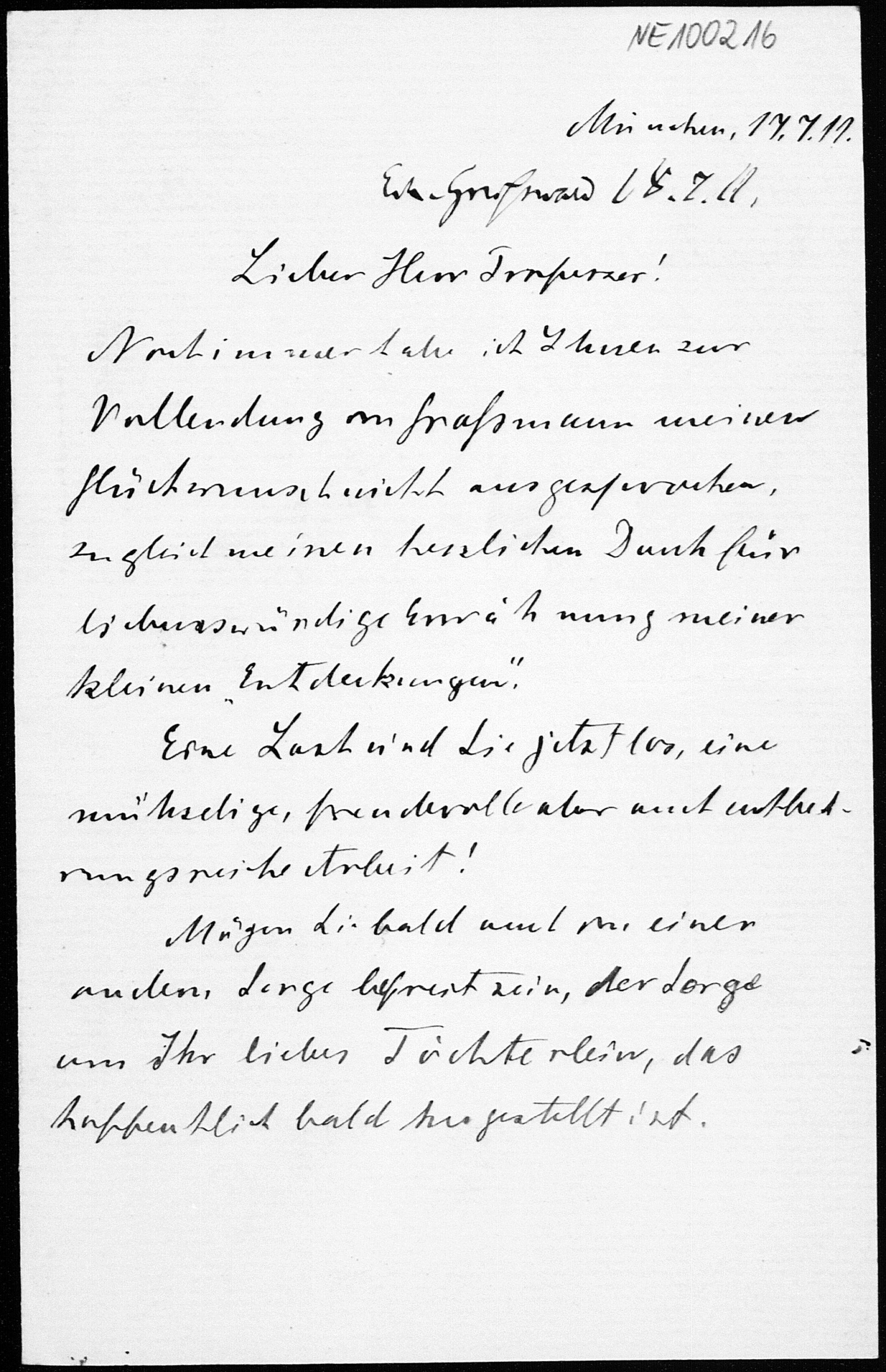 Brief von Heinrich Liebmann an Friedrich Engel vom 17.7.1911