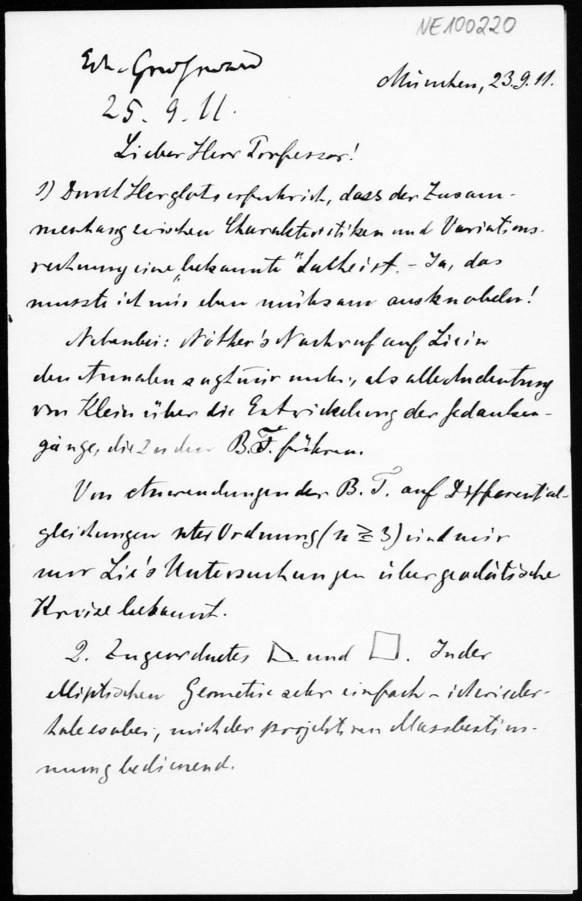 Brief von Heinrich Liebmann an Friedrich Engel vom 23.9.1911