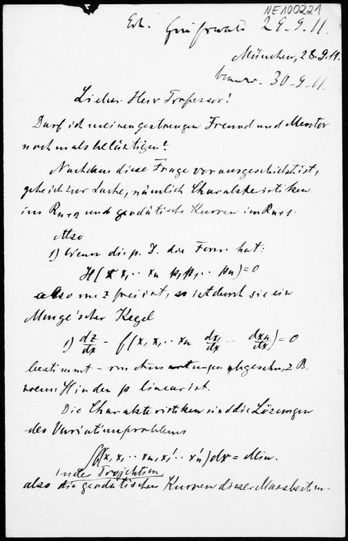 Brief von Heinrich Liebmann an Friedrich Engel vom 28.9.1911