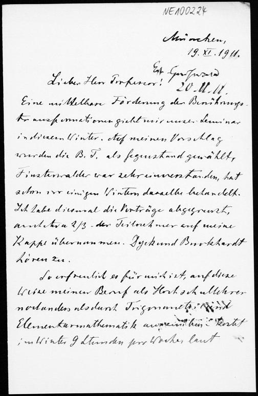 Brief von Heinrich Liebmann an Friedrich Engel vom 19.11.1911