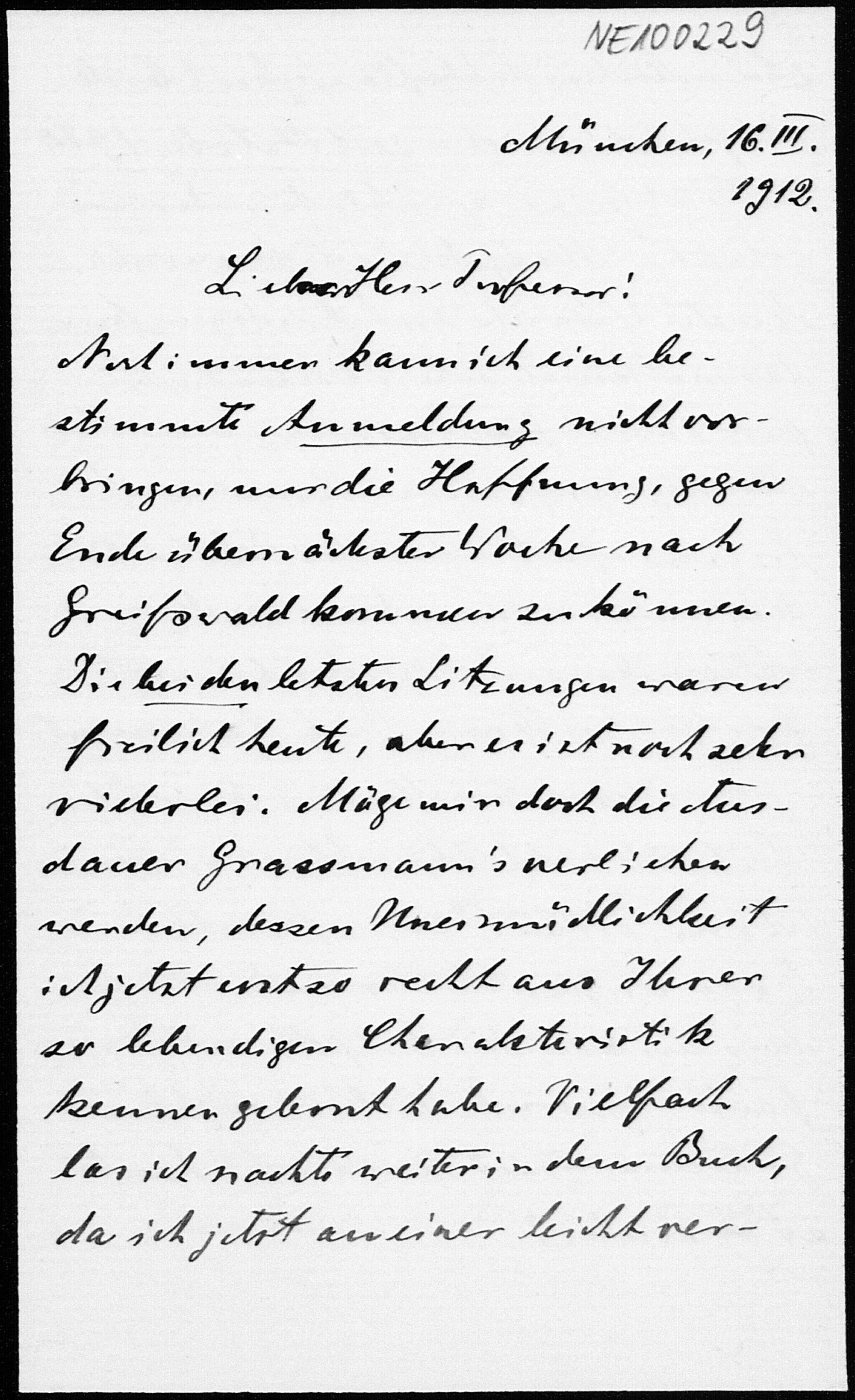 Brief von Heinrich Liebmann an Friedrich Engel vom 16.3.1912