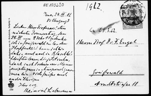 Ansichtskarte von Heinrich Liebmann an Friedrich Engel vom 24.3.1912