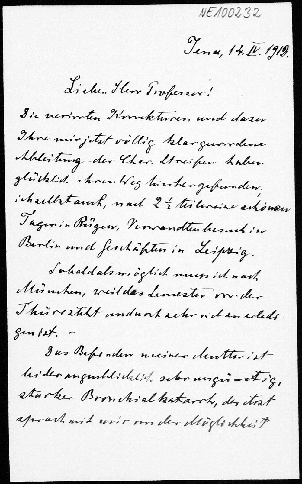 Brief von Heinrich Liebmann an Friedrich Engel vom 14.4.1912