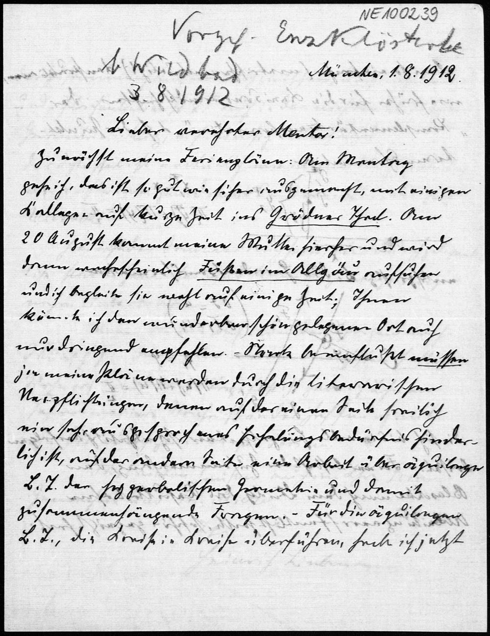 Brief von Heinrich Liebmann an Friedrich Engel vom 1.8.1912