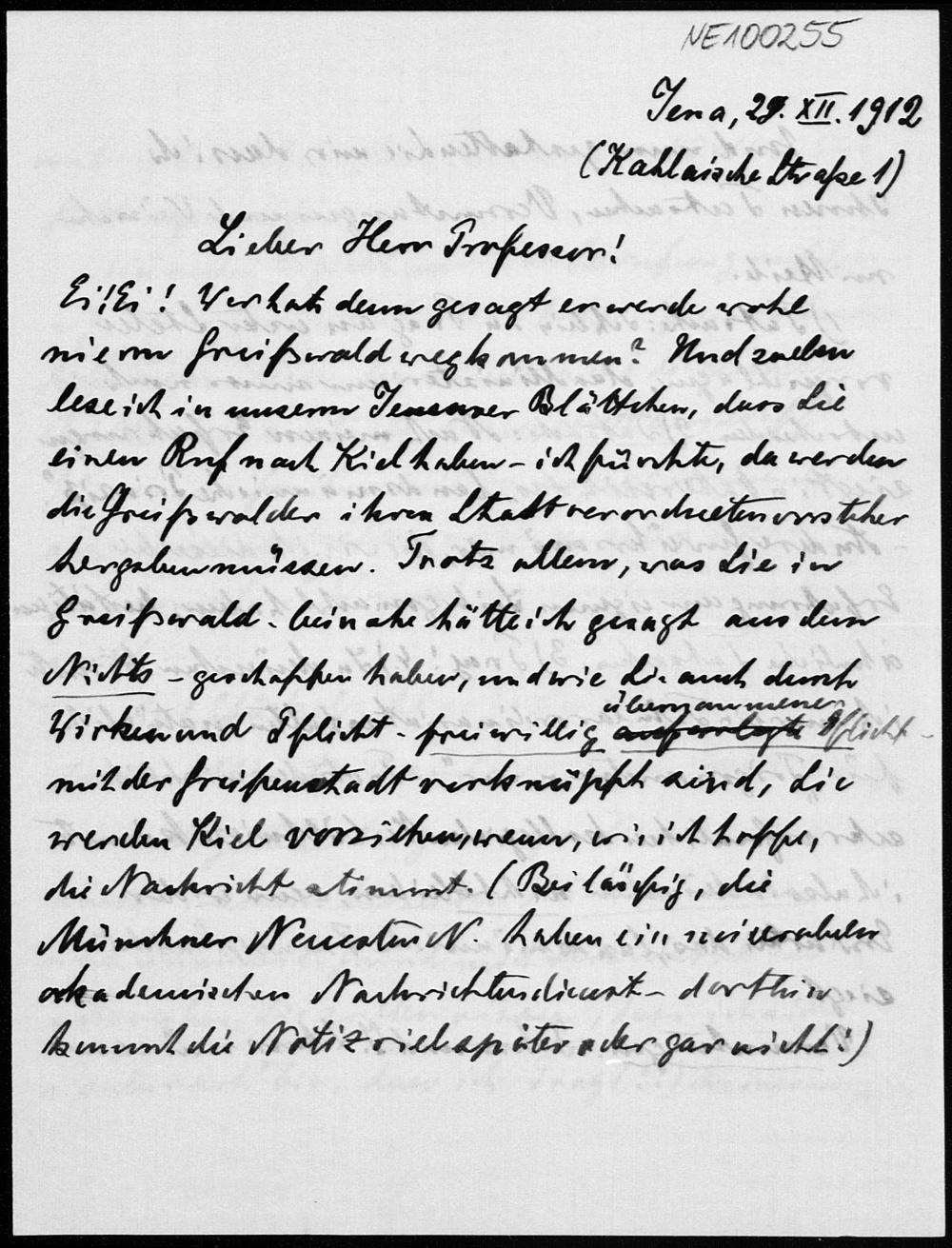 Brief von Heinrich Liebmann an Friedrich Engel vom 29.12.1912