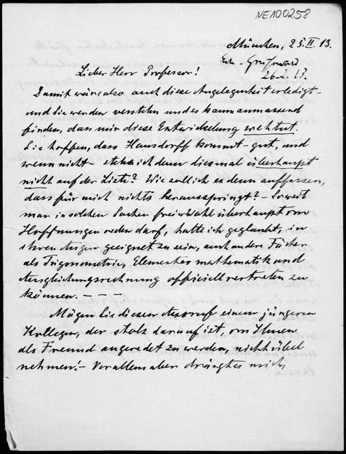 Brief von Heinrich Liebmann an Friedrich Engel vom 25.2.1913