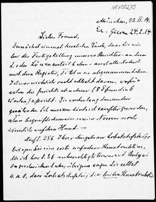Brief von Heinrich Liebmann an Friedrich Engel vom 23.2.1914