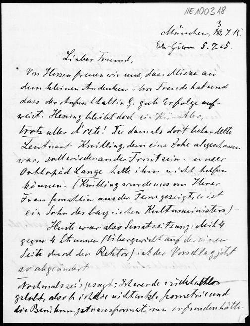 Brief von Heinrich Liebmann an Friedrich Engel vom 3.7.1915