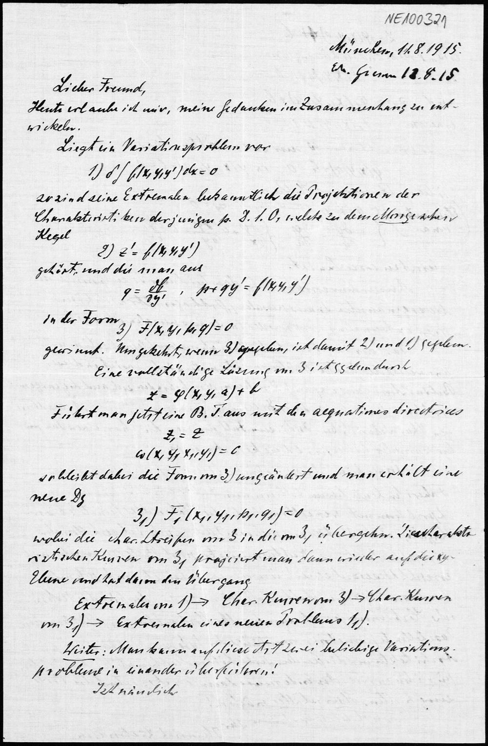 Brief von Heinrich Liebmann an Friedrich Engel vom 11.8.1915